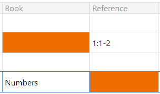 One or more cells in the Book column or Reference column will be highlighted with a colored background.